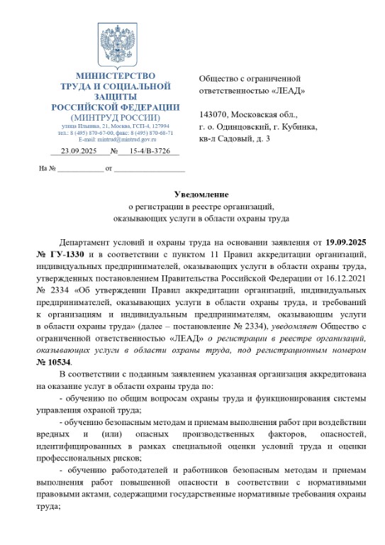 Мы становимся частью вашей команды. Вы получаете не подрядчика, а надежного партнера в области охраны труда.